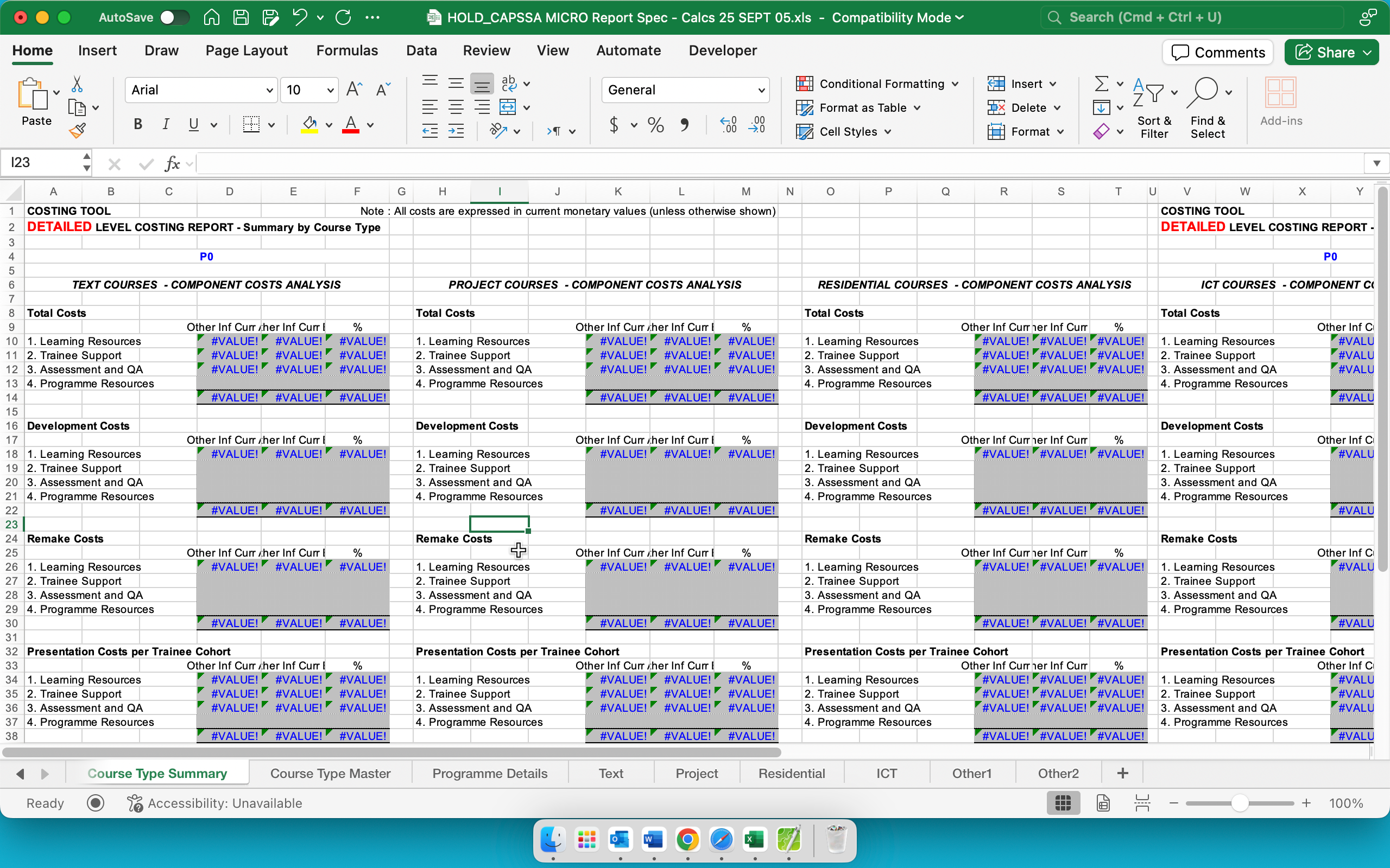 1. Course Type Summary – consolidated summary by course type (component cost breakdown comparisons)