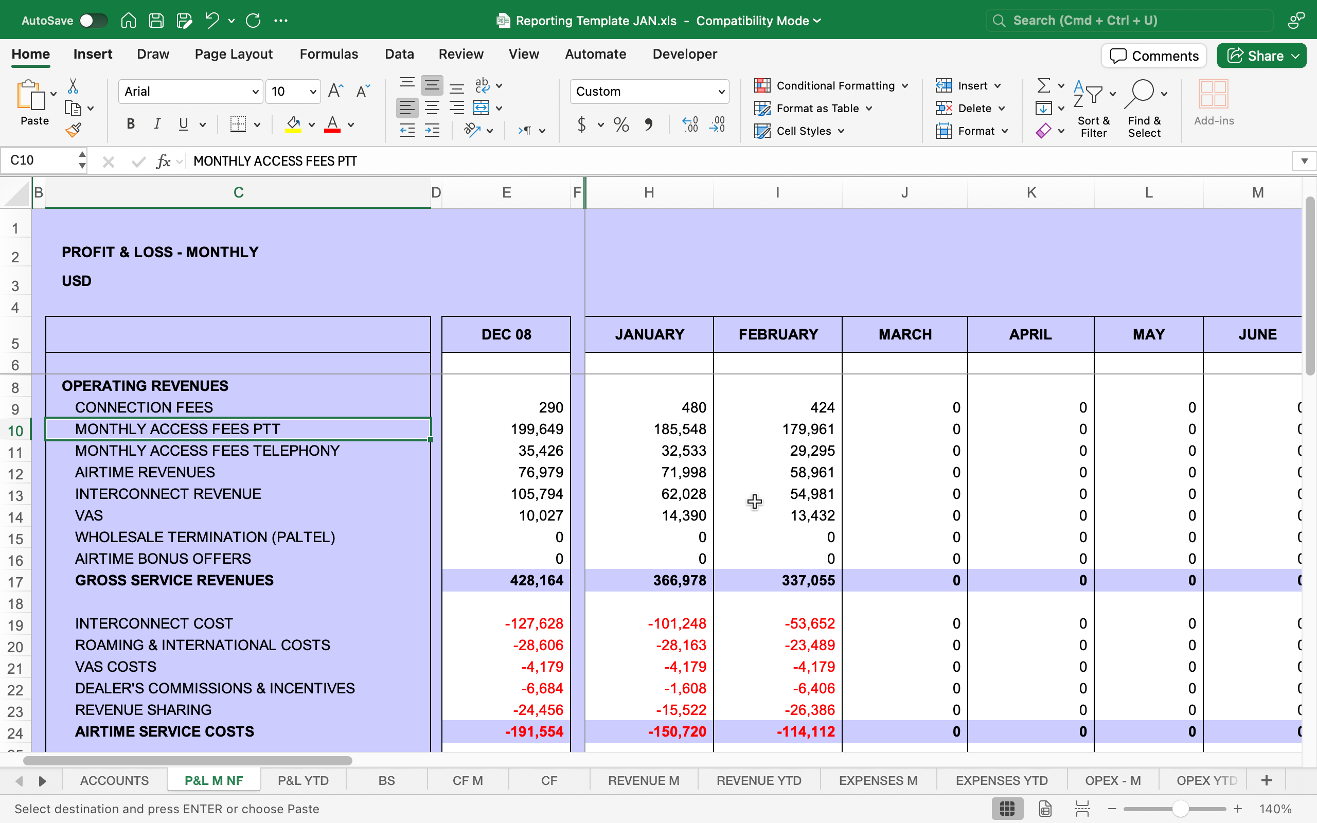 2. P&L M NF (Profit & Loss – Monthly)